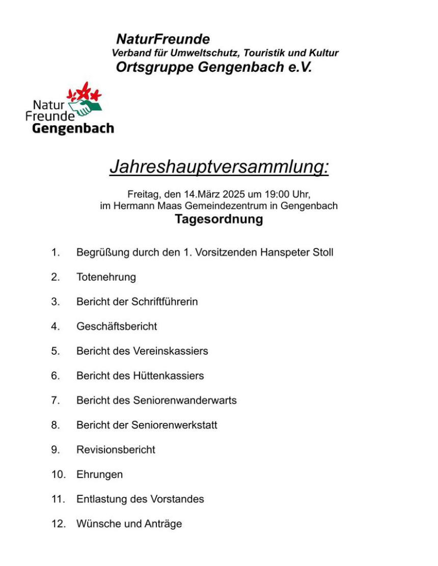 Alle Mitglieder sind hierzu recht herzlich eingeladen. Anträge zur Hauptversammlung müssen bis spätestens 07.03. schriftlich dem Vorstand vorliegen.